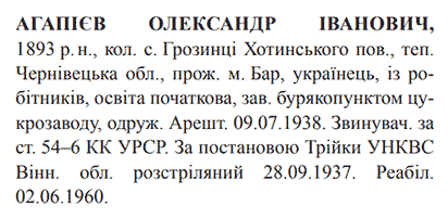 Олександр Агапів розстріляний 28.09.1937