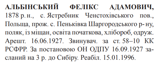 Реабілітований: Вінницькою облпрокуратурою 15.01.1996 р. Реабілітовані історією