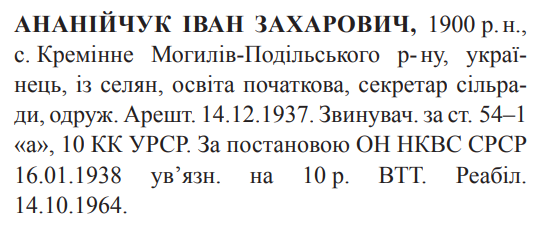 Реабілітований: Вінницьким облсудом 14.10.1964 Реабілітовані історією
