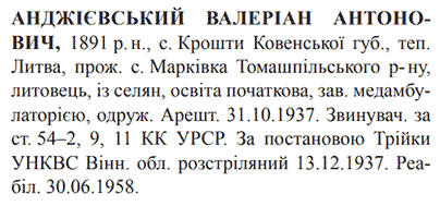 Валерян Анджеєвський розстріляний 13.12.1937