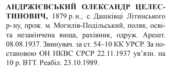 Реабілітований: Вінницьким облпрокурором 23.10.1989 Реабілітовані історією
