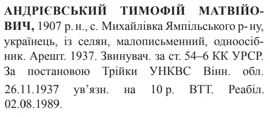 Реабілітований: Вінницькою облпрокуратурою 02.08.1989 р. Реабілітовані історією