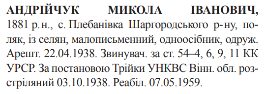 Микола Андрійчук розстріляний 03.10.1938 р.