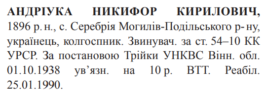 Реабілітований: Вінницькою облпрокуратурою 25.01.1990 Реабілітовані історією
