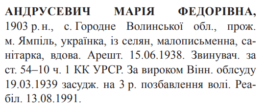 Реабілітована: Прокурором України 13.08.1991 Реабілітовані історією