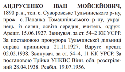 Іван Андрусенко розстріляний 28.04.1939 р.