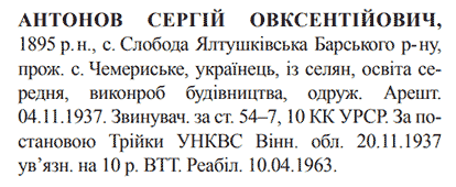 Реабілітований: Вінницьким облсудом 10.04.1963 Реабілітовані історією