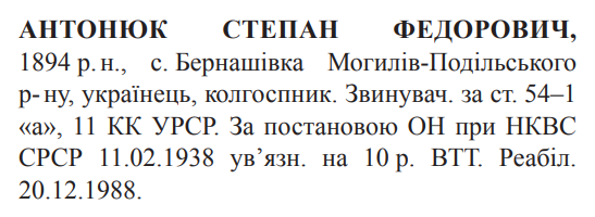 Реабілітований: 20.12.1988 Реабілітовані історією