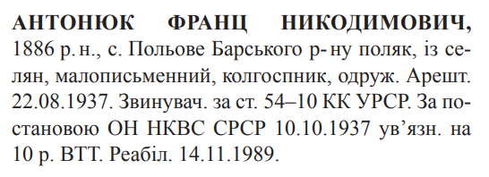 Реабілітований: Вінницькою облпрокуратурою 14.11.1989 Реабілітовані історією