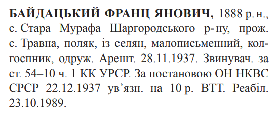 Реабілітований: Вінницькою облпрокуратурою 23.10.1989 Реабілітовані історією