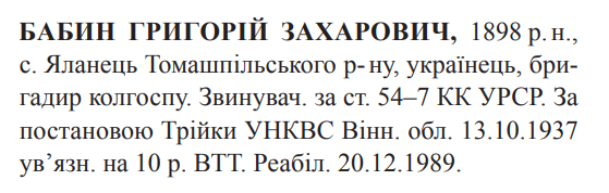 Реабілітований: 20.12.1989 Реабілітовані історією