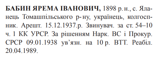 Реабілітований: Вінницькою облпрокуратурою 20.04.1989 Реабілітовані історією
