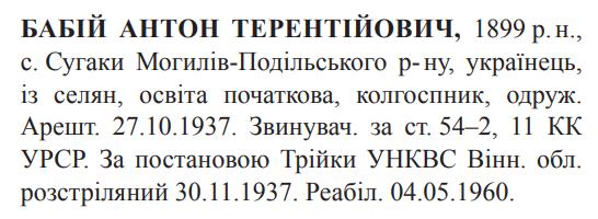 Антон Бабій розстріляний 30.11.1937