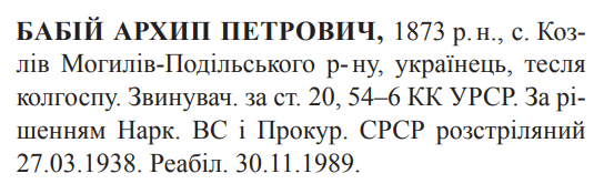 Архип Бабій розстріляний 27.03.1938