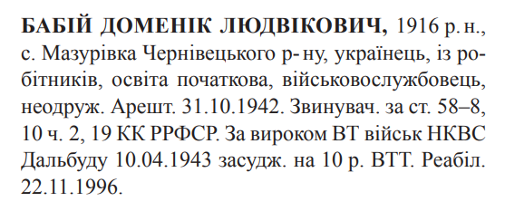 Реабілітований: Вінницькою облпрокуратурою 22.11.1996 Реабілітовані історією