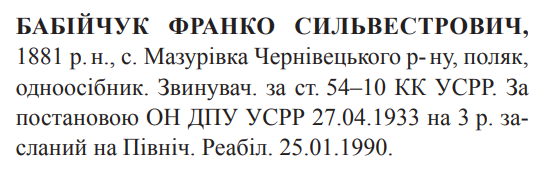Реабілітований: Вінницькою облпрокуратурою 25.01.1990 Реабілітовані історією