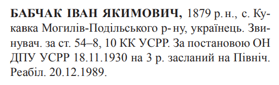 54-8, 54-10 КК УССР. ОН при колегії ГПУ УССР засуджений до 3 років заслання