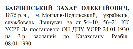 Реабілітований: Вінницькою облпрокуратурою 08.01.1990