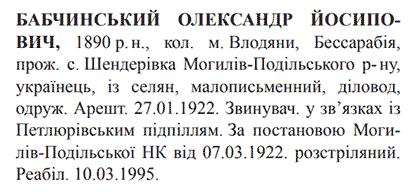 (Можливий варіант написання прізвища: Бабинський) Реабілітовані історією