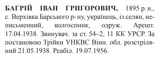 Реабілітований: Вінницьким облсудом 19.07.1956 Реабілітовані історією