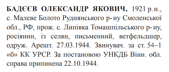 54-1 "а" КК УССР. Вінницьким управлінням НКГБ справу припинено