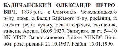 Трійкою УНКВД Вінницької обл. засуджений до розстрілу