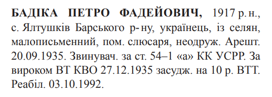 Реабілітований: Вінницьким облпрокурором 03.10.1992 Реабілітовані історією