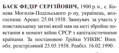 Реабілітований: Вінницькою облпрокуратурою 16.02.1990 Реабілітовані історією