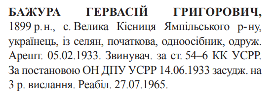 (Можливий варіант написання прізвища: Бажур) Реабілітовані історією