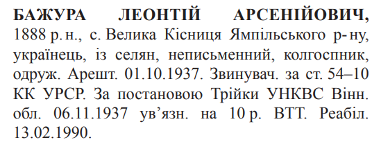 Реабілітований: Вінницьким облпрокурором 13.02.1990 Реабілітовані історією