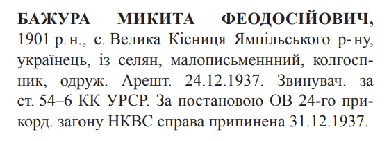 (Бажура Микита Тодосович) Реабілітовані історією