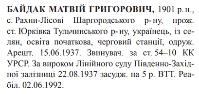 Реабілітований: Генеральною прокуратурою України 02.06.1992 р. Реабілітовані історією