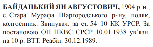 Реабілітований: 30.12.1989 Реабілітовані історією