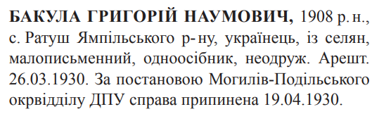 не вказана. Могилів-Подільським окружним відділом ДПУ справу припинено