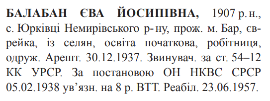 54-12 КК УССР. ОН НКВД СССР засуджена до 8 років ВТТ