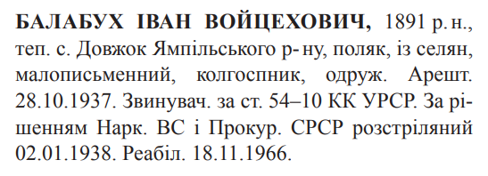 Іван Балабух розстріляний 02.01.1938