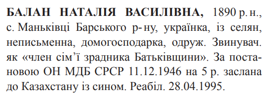 Реабілітована: Вінницькою облпрокуратурою 28.04.1995 Реабілітовані історією