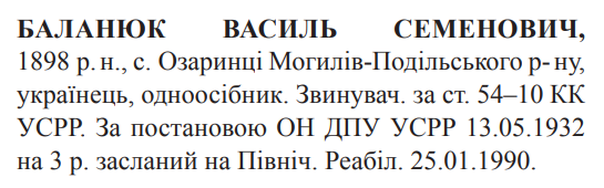 54-10 КК УССР. ОН при колегії ГПУ УССР засуджений до 3 років заслання