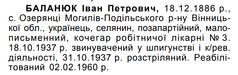 Іван Баланюк розстріляний 31.10.1937 р.