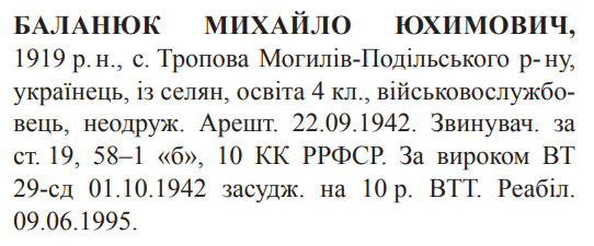 Реабілітований: Військовою прокуратурою Центрального регіону України 09.06.1995 Реабілітовані історією