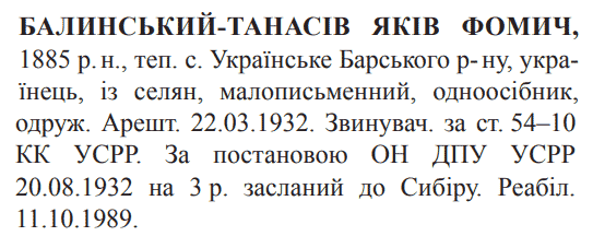 Реабілітований: Вінницьким облпрокурором 11.10.1989 Реабілітовані історією