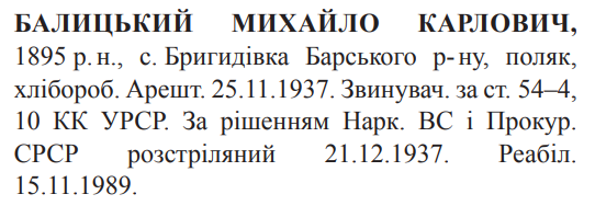 Михайло Балицький розстріляний 21.12.1937