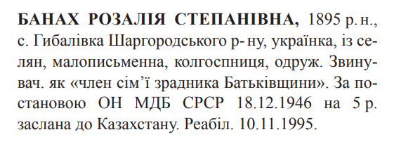 Реабілітована: Вінницькою облпрокуратурою 10.11.1995 Реабілітовані історією
