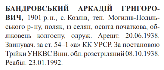 Аркадій Бандровський розстріляний 08.10.1938
