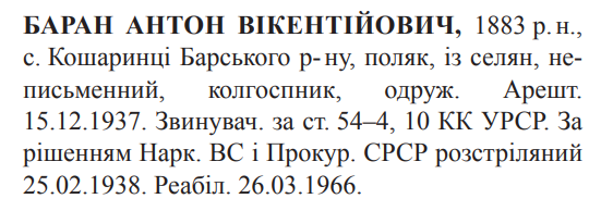 Реабілітований: Верховним судом УССР 26.03.1966 Реабілітовані історією