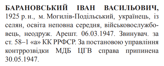 Реабілітований: Управлінням контррозвідки МДГ Центр. 30.05.1947 Реабілітовані історією