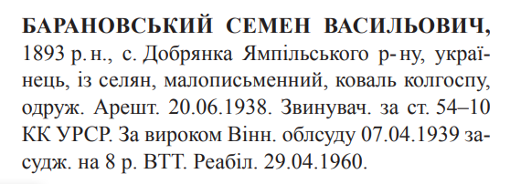 54-10 КК УССР. Вінницьким облсудом засуджений до 8 років ВТТ