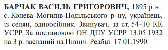 Реабілітований: Вінницькою облпрокуратурою 17.01.1990 Реабілітовані історією