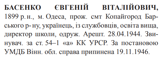 54-1 "а" КК УССР. Вінницьким управлінням МГБ справу припинено