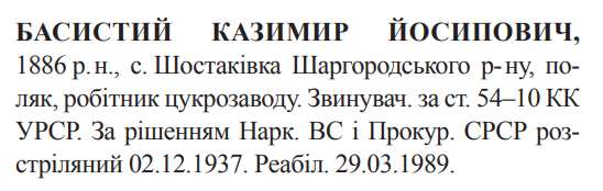 Реабілітований: Вінницькою прокуратурою 29.03.1989 Реабілітовані історією